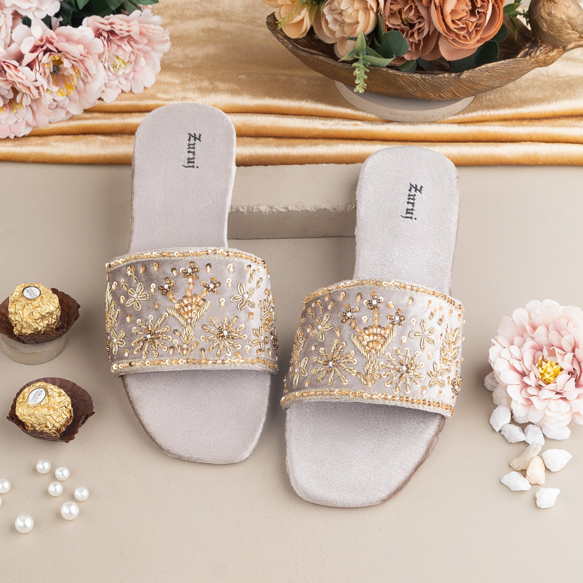 FL-238-Grey is a quintessential exemplary of pleasant, luxurious and traditional artistry FLATS made with beautiful hand made work on GREY color suite Fabric . These are the adorable heritages of Pakistan that are hand-sewed by determined cordwainers of rural areas to exhibit the utmost beauty of prepossessing feet.