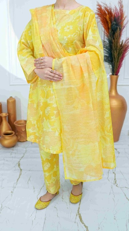 Embrace timeless elegance with the Sunshine Bloom stitched Set, a delicate floral design that brings nature's beauty to life in your wardrobe.